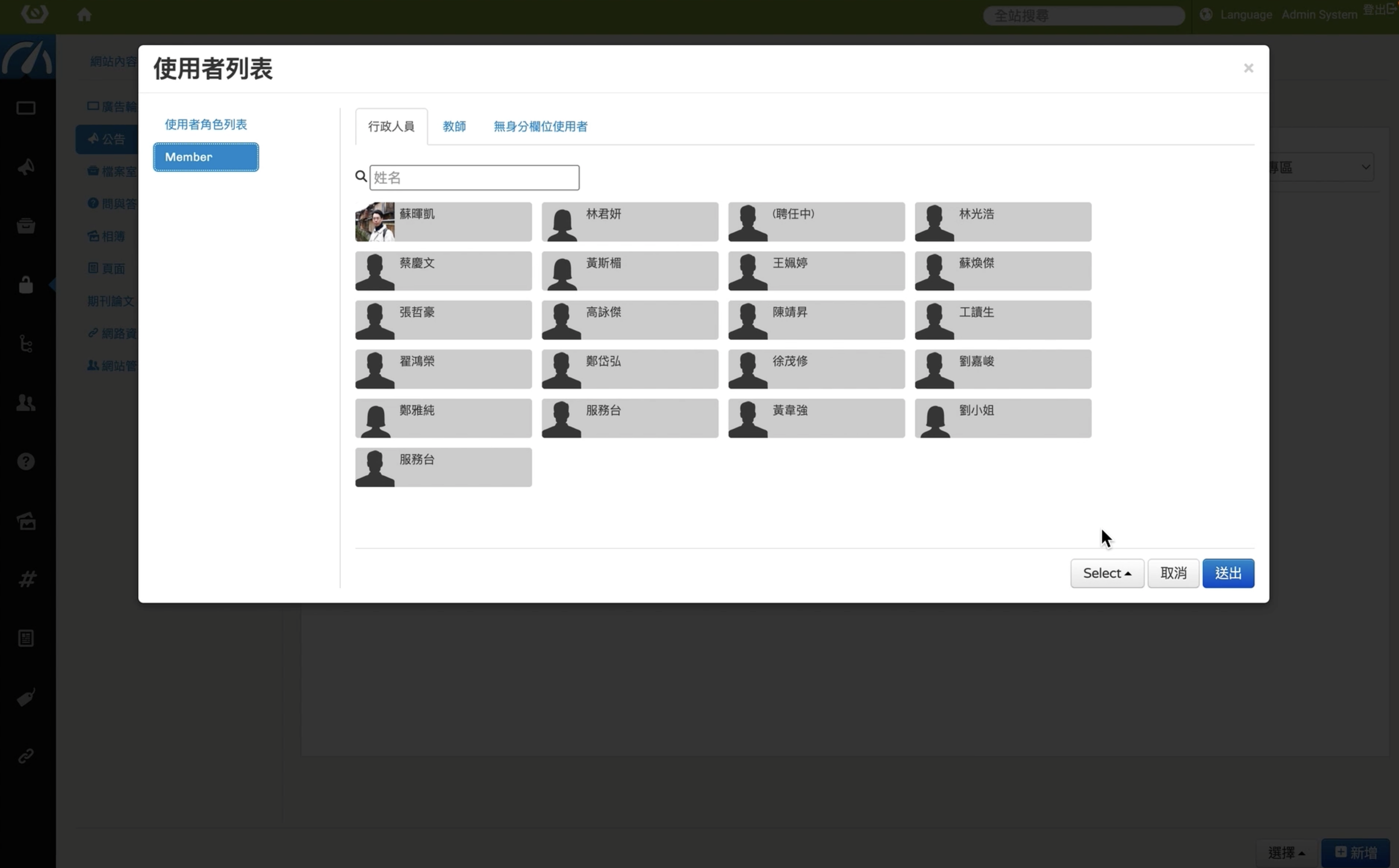 管理與更改使用者帳號密碼僅系統管理者具有此權限